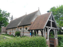 The Civil War poet Edmund Waller lived in the manor house at Coleshill. His family had lived there since the early 1500’s. He used to write his poetry under an oak tree, which is thought to date back to the Norman Conquest. There is a house called Waller’s Oak, and another house, Stock Place, incorporates a wing of the old manor house (Stock was the name of the village in the middle ages). The parish church has a modern Lych Gate, made of English Oak on a brick base, with a tiled roof.