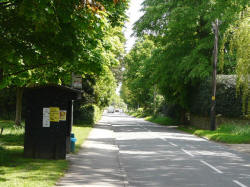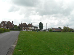 I continued on in the same direction along a residential street, and then on a footpath which carried on as the street went right. This very soon came to a path junction, where I turned right and followed the path between garages and a hedge to reach a road. Here I turned left, and followed the road for over half a mile through the large village. I soon passed the Bat and Ball pub on the left, as the name suggests adjacent to the village playing field [17]. Further on I passed the Village Centre (presumably similar to a village hall) and then the Royal British Legion building, both on my right. Eventually I came to a mini-roundabout on the edge of the village, where I turned right.