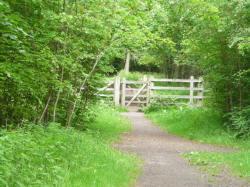 | [13] Start of the path through Penn Wood | [14]The path through Penn Wood | [15]Path heading towards Toby's Lane |