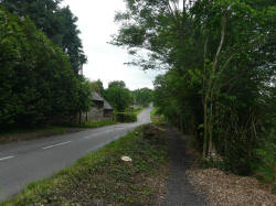 I followed the road to the right (Cowleaze Wood was a mile or so to the left), soon passing a turning to the right (my next walk will start at a car park about quarter of a mile down that road, on Watlington Hill). I kept on the road as it turned slightly right where another road forked left. I passed a few houses and the Fox and Hounds pub on my right, then turned left on a footpath, with the converted church on my right. The path ran through Queen Wood for a short distance, ending at a path junction by a garden fence, where I followed a driveway a few yards to the left to reach a lane. I turned right along this lane, with tall hedges or fences either side, until I reached a bridleway going left after about 200 or 300 yards.