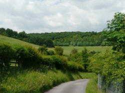 | [22]> The path descending from Ibstone | [23] The path through the Wormsley Valley | [24] The drive through the Wormsley estate |