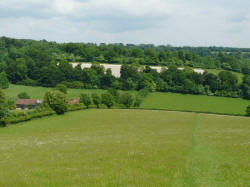 | [4]> The path towards Pyrton | [5] The start of the path up Pyrton Hill | [6] View over the Oxfordshire Plain from the path up Pyrton Hill |