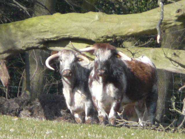 Walk 16 of my Chiltern Chain Walk goes right here, but I went straight ahead. The path descended across a large pasture - along the hedge some distance to my left were some Longhorn cattle. I was now crossing the Wormsley estate, and I’d seen the cattle before on another part of the estate that is crossed by the Chiltern Way. There were again some marvellous views, along the Wormsley valley to my left and ahead to the steep slopes on the other side of the valley.