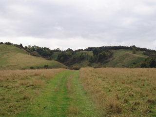 The deep combe of Barn Hole with Pegsdon hill on the right 22/10/05