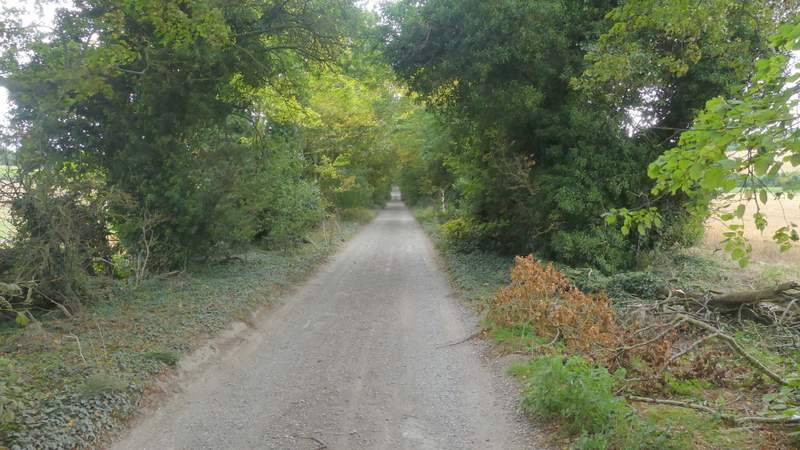 There were some very ominous dark grey clouds coming in from the west now, and I was fairly sure I'd have some rain before I finished the walk. After just over half a mile I reached another bridleway crossroads, where I again turned right, joining a surfaced drive running between mature hedgerows. After a few hundred yards, just before some stone gate posts, the bridleway forked slightly left from the drive, and was soon following a long hedgerow beside another stubble field on my right. This part of the bridleway is marked 'Ladies Walk' on the OS map but I don't know why - I guess it has some connection to Swyncombe House which the bridleway passes further on.