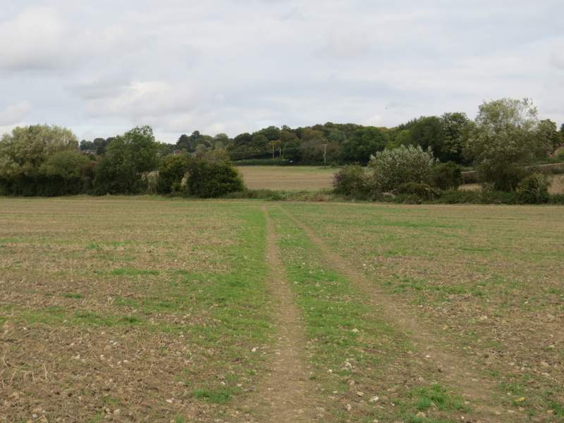 The path ended in a tree belt at the bottom of the valley, where I turned left at a path junction. I soon left the tree belt, the path continuing northwest along the Misbourne valley, now following a broad grassy strip between paddocks. Through a kissing-gate it then continued beside a hedge on my right, beside another paddock. Across Bottom House Farm Lane, the path crossed an empty paddock, then ran through some long grass between a field and the river Misbourne over to my right. The path then followed a hedgerow on my right for several hundred yards, with ploughed fields rising uphill to my left. After this it then continued for a while with no hedges either side, then shortly after a hedge started again on my left I came to a path junction where I went half-right across a ploughed field to reach a footbridge over the Misbourne (sadly not much more than a few puddles here).