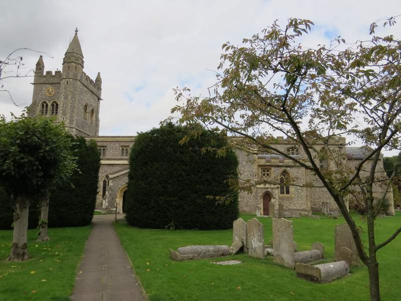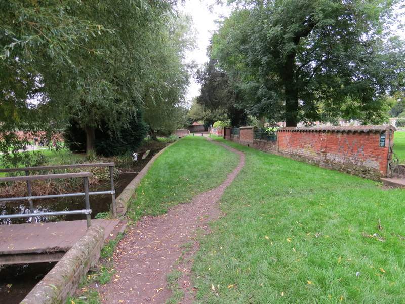 Immediately after crossing the footbridge, I turned left along a slightly overgrown path running parallel to the river. Eventually, after several hundred yards, the path followed the river under a graffiti-strewn road bridge. The path soon after entered a meadow, where it followed the hedge on my left to reach a road on the edge of Amersham Old Town. I crossed over and went left for a few yards, then turned half-right in front of The Chequers pub, continuing through a car park to reach another road (in 2006 the route just followed the first road to a roundabout and turned right). I used a pedestrian crossing to get over this road, and continued down a footpath on the other side. This passed a smallholding or allotment on my left, before once more running close to the river, now with a large field sloping up on my left. The path then continued past a cemetery on my right, still with the river on my left. I then turned left over a brick bridge, and after a few yards I forked left, immediately then forking right to follow a stone path to the door of Amersham church.