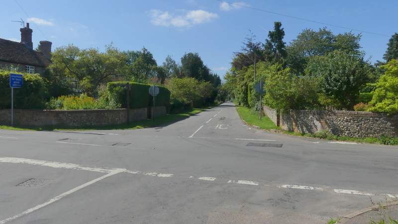 I went straight on at a crossroads in the centre of the village, soon passing the Green Dragon pub on my right and following the road as it turned right by the village church (there was a nice view from a gateway just left of the church, that I don't think I've noticed before). I stayed on the road as it left the village and gradually descended over about half a mile into the valley of Flaunden Bottom. When the road turned left in the valley, I went straight on along a broad hedge-lined bridleway.