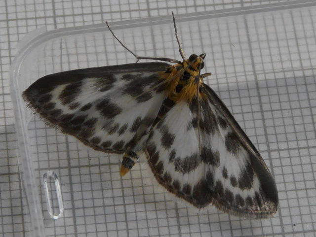 This moth is common in southern parts of the UK, less so in the north. It flies between June and July (like many other species, it seems to have appeared a little early in 2011 because of the unusually warm and dry spring).